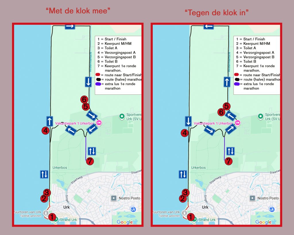 De definitieve looprichting wordt enkele dagen voor de start vastgesteld en duidelijk gecommuniceerd. In de onderstaande afbeelding staan zowel de routes als de locaties van de voorzieningen weergegeven.